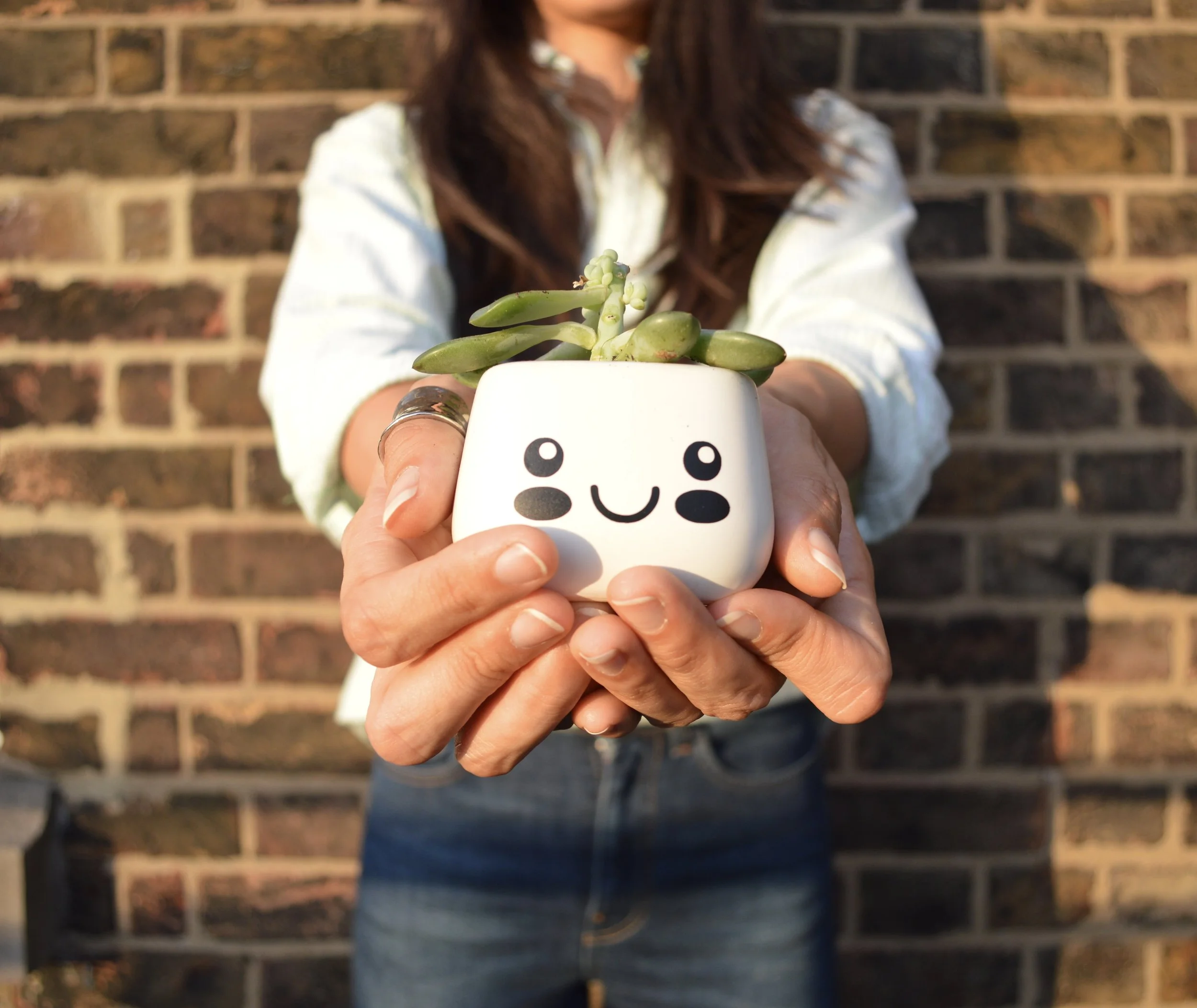 The super cute, super smiley plant pot included in images was a gifted item from Innocent Planters. They’re an affordable, friendly and sustainable brand and even better their packaging peanuts aren’t just recyclable but dissolve in water which is fun to watch. Please do go check them out!